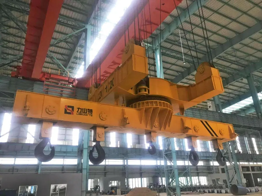 智能吊具:眼观六路,耳听八方,实现自动夹紧、松开、旋转功能,将传感器信号传回车载PLC,确保动作准确无误。具有钢卷内径识别技术,安装在吊具上的钢卷内径感应传感器、光电传感器,反馈信号进行速度控制并在夹紧钢卷后通过PLC中时间控制回退5mm,防止成品钢卷受损。针对不同的钢材物料,特殊产品及不同作业环境,采用三维激光扫描系统配合各种不同的专用吊具(吸盘、带卷夹钳、板坯夹钳等)通过扫描的实时数据进行自动吊运。