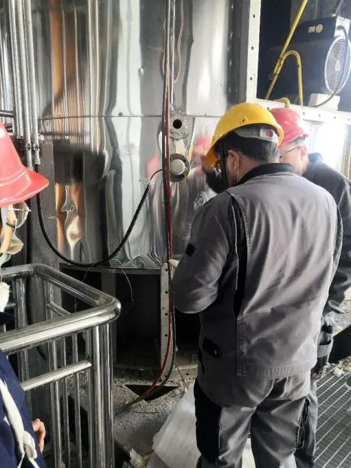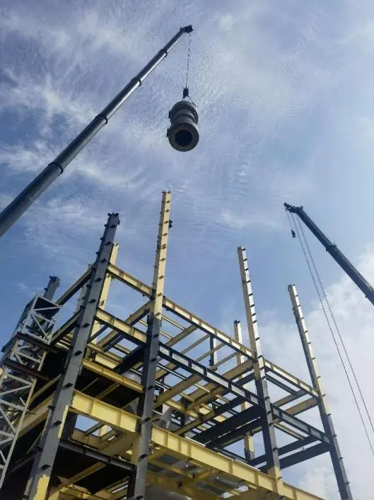 玻璃钢设备安装过程与土建和钢结构交叉作业, 施工难度较大, 施工进度缓慢, 现场团队迎难而上, 不断与各作业方沟通逐个解决问题