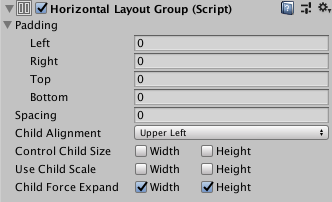 | Child Force Expand | Whether to force the child layout elements to expand to fill additional available space. |