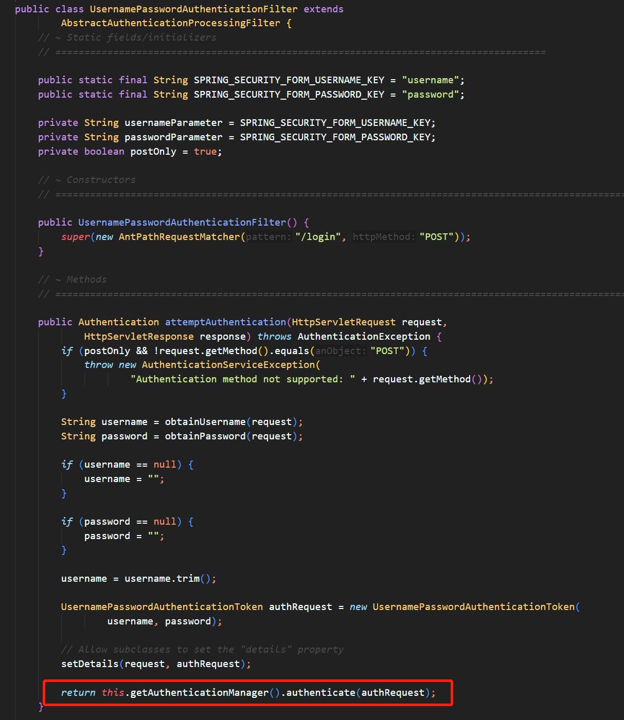 1.1 UsernamePasswordAuthenticationFilter 源码